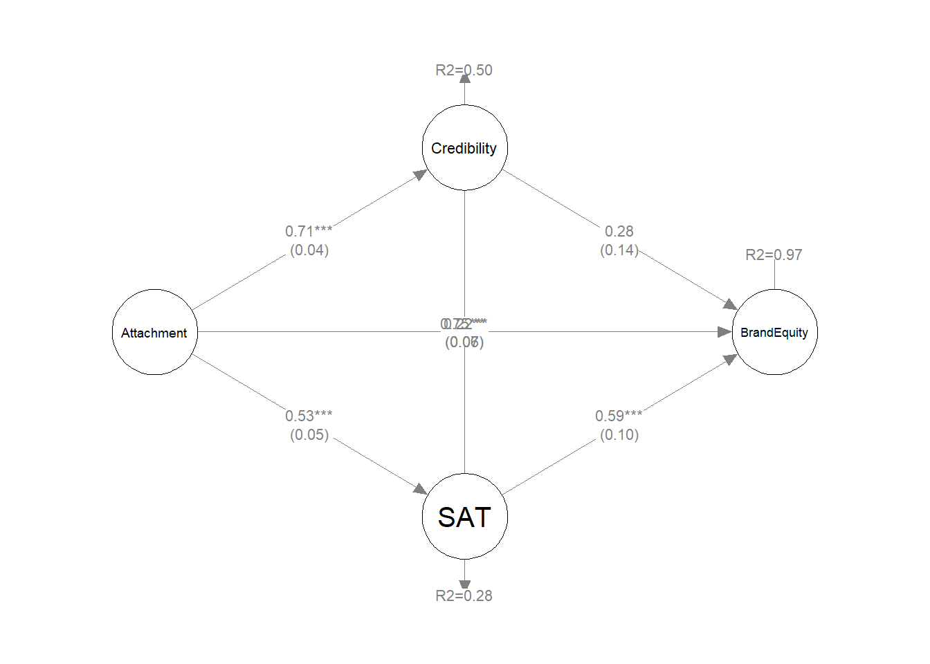 BrandEquity ~ H3*Attachment + H4*Credibility + H5*SAT