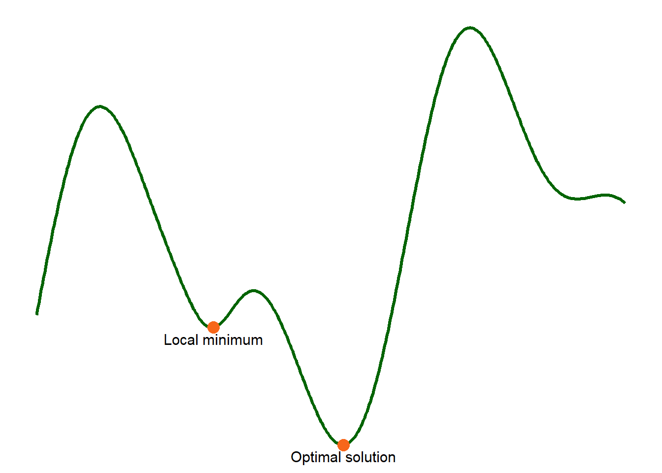 A “greedy search” makes small changes and accepts every improvement, rejecting any changes that do not improve the configuration. An earlier version of the makeItemsScale() function did just this. It was fast, but often failed to converge to give the desired alpha value because the algorithm was trapped in a local minimum solution.